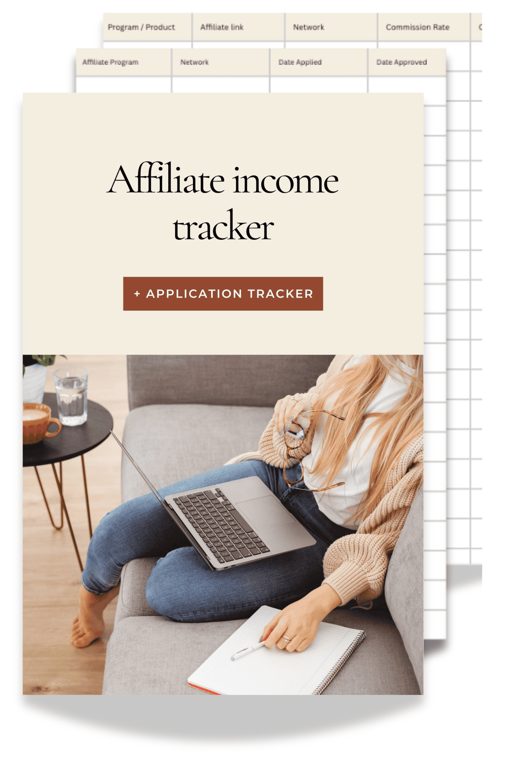 Don’t lose track of your affiliate program applications or income. These sheets will help you stay on track, providing a place to store your unique affiliate links and remind you how/when you will be payed.