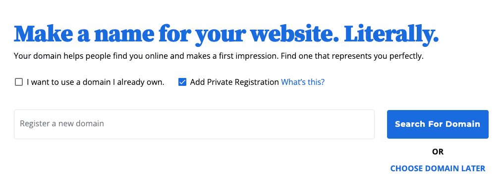 Next, you’ll be prompted to pick a domain name and fill in a couple of forms.