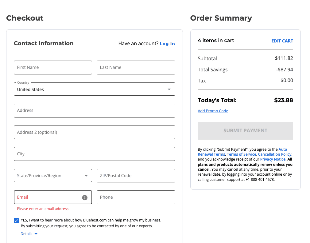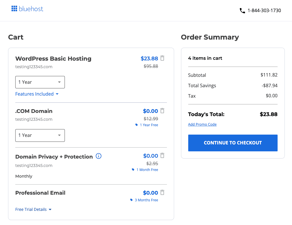 You can skip the extras Bluehost try to upsell you on.
