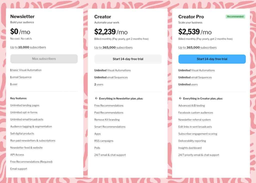 Yes, the higher tiers sound steep, but if you ever reach 400,000 subscribers, your email list will almost certainly be bringing in a lot more than it’ll be costing you to run.